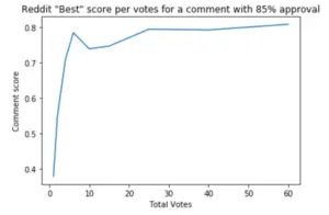 If you want to see what the “best” score looks like, I plotted the output for a post with a 85% upvote ratio from 0 to 100 votes: