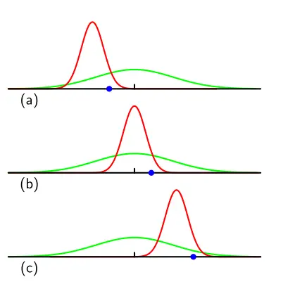 Imagine the following distributions are the possible outputs of all models over the data for a given proposal: