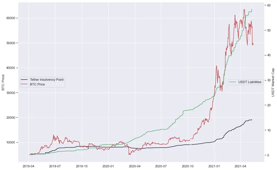 Notice that the last point in time where BTC price went significantly below the death zone is the March 2020 COVID price crash – which is also the point where USDT were started to be minted at a parabolic rate.