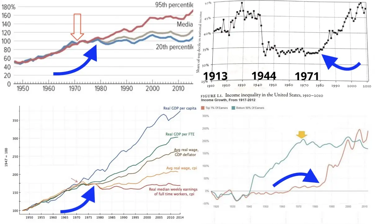 This is starting on the wrong foot. The idea that 1971 had anything to do with the productivity-wage divergence is a stretch because even the EPI who made that graph put the divergence at 1978: