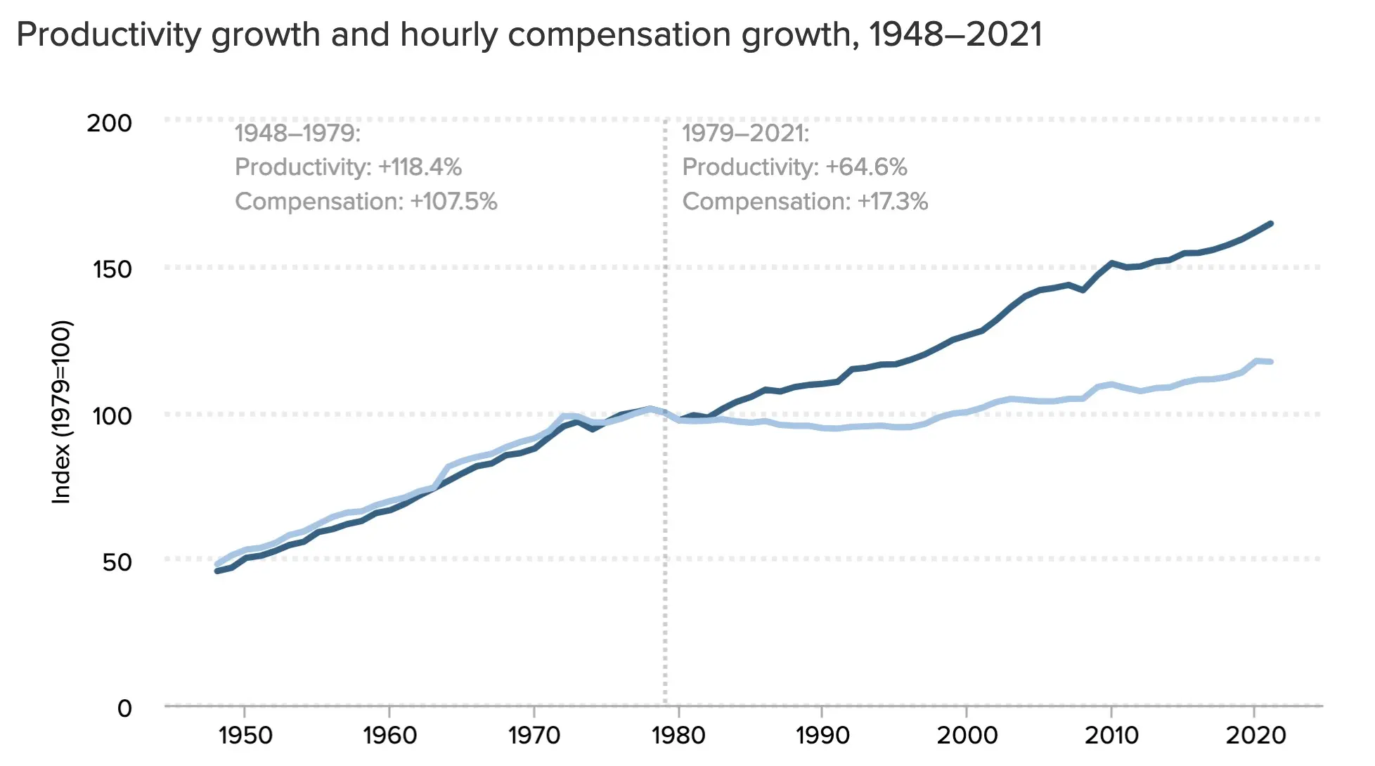 There are several things going on at once in the wage-productivity divergence chart, so we need to unpack some labor economics.