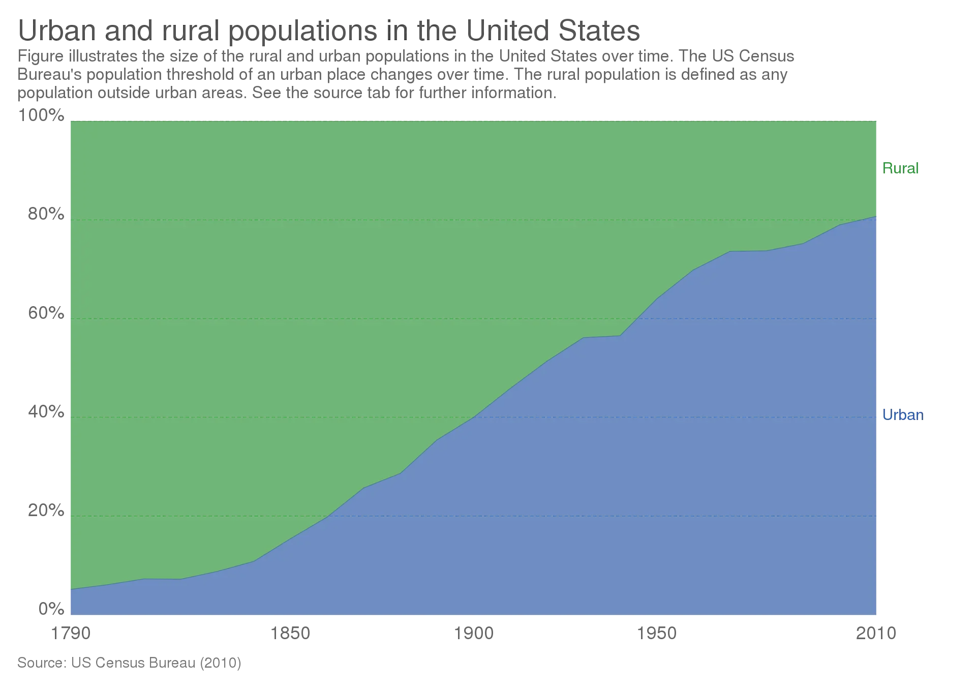- People want to live in cities. From 1950 to 2010, the number of US people living in cities went from 50% to 80%: