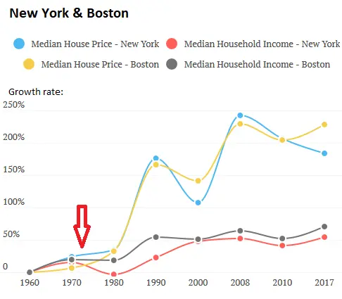 Apart from the fact that the trend starts in 1980 again, it’s clear housing prices have diverged from wages.