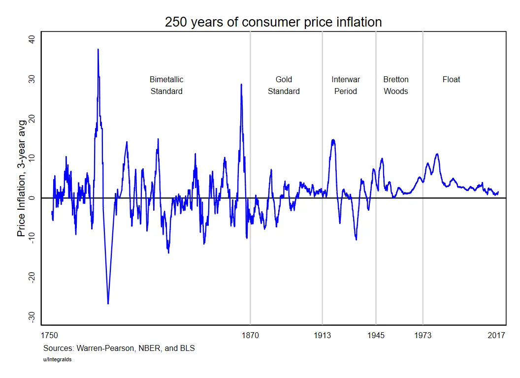 The 1971 switch to a floating currency permitted the period of low/stable inflation from 1980-onwards:
